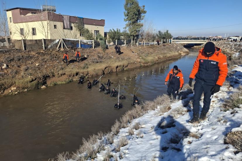 Şanlıurfa’nın Harran ilçesinde sulama tahliye kanalına düşen araçta kaybolan vatandaşı arama çalışmaları aralıksız devam ediyor.