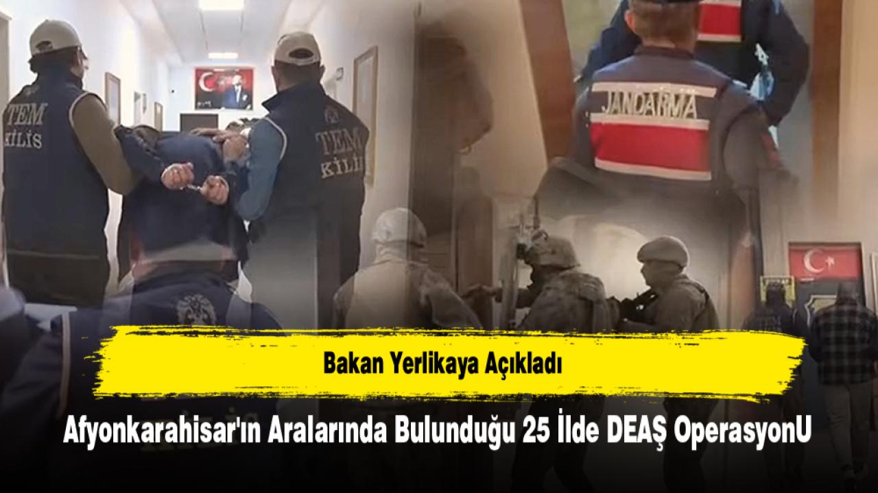 İçişleri Bakanı Ali Yerlikaya sosyal medya hesabından yaptığı paylaşımla aralarında Afyonkarahisar'ın da bulunduğu 25 ilde bu sabah eş zamanlı operasyonla Jandarma ve polis ekipleri tarafından 125 DEAŞ şüphelisini yakaladıklarını ifade etti.