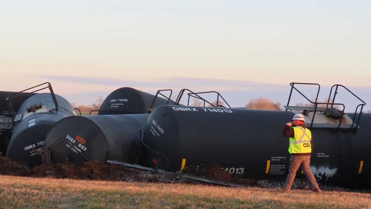 Sebuah kereta api tergelincir berhampiran Trenton di negeri Kentucky, Amerika Syarikat (AS) pada Selasa, mencetuskan kebakaran bahan kimia.