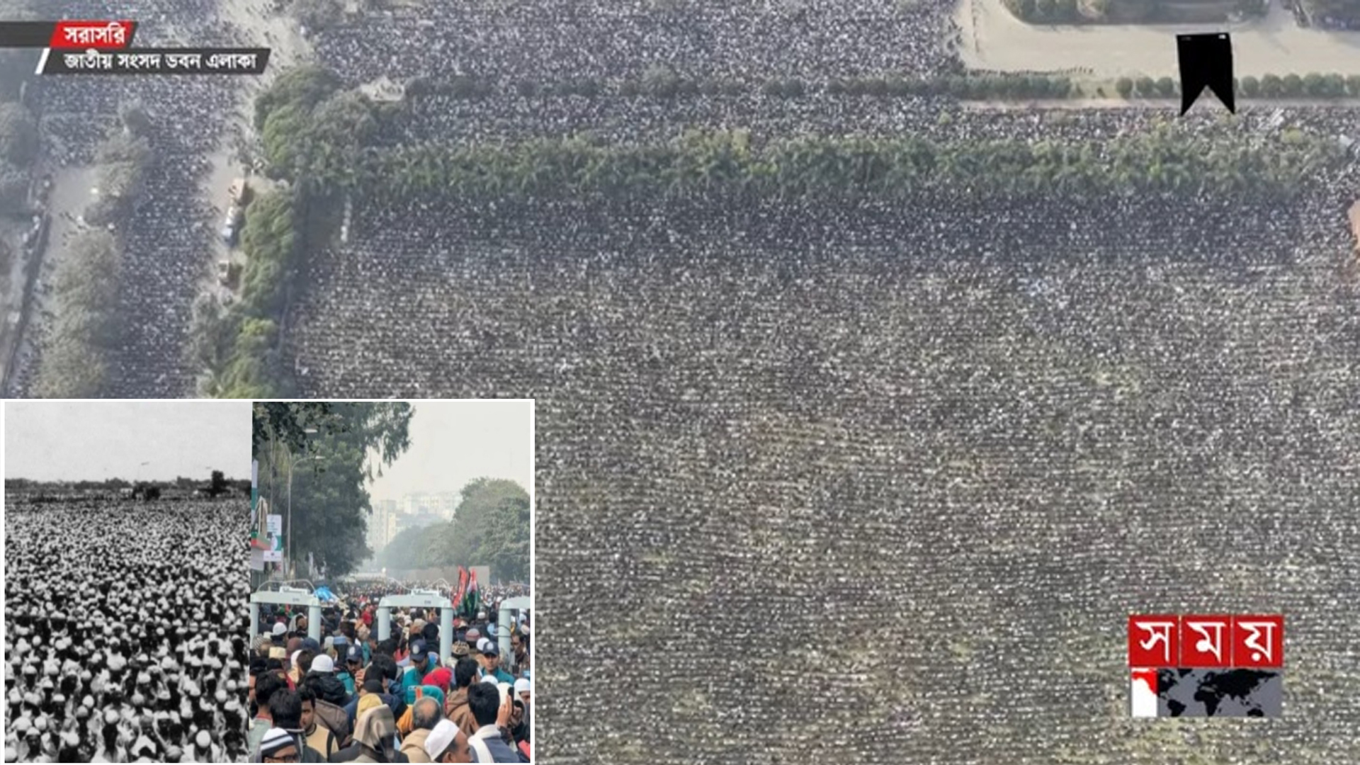 বিএনপি চেয়ারপারসন ও সাবেক প্রধানমন্ত্রী খালেদা জিয়া সংসদ ভবনের পেছনে, স্বামীর কবরের পাশে সমাহিত হবেন। লাখো লাখো মানুষের উপস্থিতিতে তার নামাজে জানাজা অনুষ্ঠিত হয়েছে মানিক মিয়া অ্যাভিনিউতে। এটি যেন ইতিহাসেরই সেই পুনরাবৃত্তি। ৪৪ বছর আগে একই স্থানে লাখো মানুষ শহীদ রাষ্ট্রপতি জিয়াউর রহমানকে শেষ বিদায় জানিয়েছিলেন। আজ আবার সেই জায়গাতে নামল মানুষের ঢল।এদিন মা বেগম খালেদা জিয়ার কোনো ব্যবহার বা কথায় কেউ আঘাত পেয়ে থাকলে নিজে ক্ষমাপ্রার্থী বলে জানিয়েছেন তার বড় ছেলে তারেক রহমান। বুধবার (৩১ ডিসেম্বর) বিকেল ৩টার দিকে বিএনপি চেয়ারপারসন ও সাবেক প্রধানমন্ত্রী বেগম খালেদা জিয়ার জানাজার আগমুহূর্তে পরিবারের পক্ষ থেকে এ কথা জানান তিনি। বিএনপির ভারপ্রাপ্ত চেয়ারম্যান তারেক রহমান বলেন, আমি মরহুমা বেগম খালেদা জিয়ার বড় সন্তান তারেক রহমান। এখানে যে সকল ভাই-বোনেরা উপস্থিত আছেন, মরহুমা বেগম খালেদা জিয়া জীবিত থাকাকালে যদি আপনাদের কারও কাছ থেকে কোনো ঋণ নিয়ে থাকেন দয়া করে আমার সঙ্গে যোগাযোগ করবেন। আমি সেই ঋণটি পরিশোধের ব্যবস্থা করবো ইনশাআল্লাহ। ১৯৮১ সালের ৩০ মে চট্টগ্রাম সার্কিট হাউসে সেনাবাহিনীর একদল অফিসারের ব্যর্থ অভ্যুত্থানে শহীদ হন রাষ্ট্রপতি জিয়াউর রহমান। খালেদা জিয়া তখন দেশের ফার্স্টলেডি ছিলেন। চট্টগ্রাম বিএনপির দুই গ্রুপের কোন্দল মেটাতে তিনি সেখানে গিয়েছিলেন। সার্কিট হাউসে দিনভর বিএনপি নেতাদের সঙ্গে বৈঠক শেষে রাতের দিকে সেনা অভিযানে নিহত হন রাষ্ট্রপতি। পরের দিন ২ জুন মানিক মিয়া অ্যাভিনিউতে রাষ্ট্রীয় মর্যাদায় তার জানাজা অনুষ্ঠিত হয় এবং সংসদ ভবনের উত্তর পাশে দাফন করা হয়। ৪৪ বছর পর একই জায়গায় এবার খালেদা জিয়ার নামাজে জানাজা অনুষ্ঠিত হয়েছে। স্বামী হারানোর পর কোনো প্রাথমিক রাজনৈতিক অভিজ্ঞতা ছাড়াই বিএনপির নেতৃত্ব গ্রহণ করে দলকে নির্বাচনে বিজয়ী করে রাষ্ট্রক্ষমতায় পৌঁছান। নিজের প্রজ্ঞা ও নেতৃত্বে তিনি দেশের প্রথম নারী প্রধানমন্ত্রী হিসেবে ইতিহাসে নাম লিখিয়েছেন। তারেক রহমান ও আরাফাত রহমানকে নিয়ে সাধারণ জীবন কাটানো সেই গৃহবধু আজ বাংলাদেশের রাজনীতিতে এক যুগান্তকারী নেত্রী হিসেবে স্মরণীয়। ১৯৮১ সালের সেই দিনে যেমন ঢাকার মানুষ স্বতঃস্ফূর্তভাবে রাষ্ট্রপতির জানাজায় অংশ নিয়েছিল, ২০২৫ সালের আজও (বুধবার, ৩১ ডিসেম্বর) মানিক মিয়া অ্যাভিনিউয়ে লাখো লাখো মানুষ খালেদা জিয়ার শেষ বিদায়ে অংশগ্রহণ করেছেন। খালেদা জিয়া স্বামীর রাজনৈতিক পরম্পরাকে ধারণ করে নেতৃত্ব দিয়েছেন বিএনপিকে। তার মৃত্যু বাংলাদেশের রাজনৈতিক ইতিহাসে একটি বিশেষ অধ্যায়ের সমাপ্তি হিসেবে চিহ্নিত হবে। মানিক মিয়া অ্যাভিনিউয়ে তার নাম