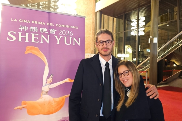 2025年12月30日晚,公司老板Zanini Marco和朋友Sofia Sicula在意大利都灵王家剧院(Teatro Regio Torino)观赏神韵纽约艺术团新一季的首场演出。(Massimo Marcon/大纪元)