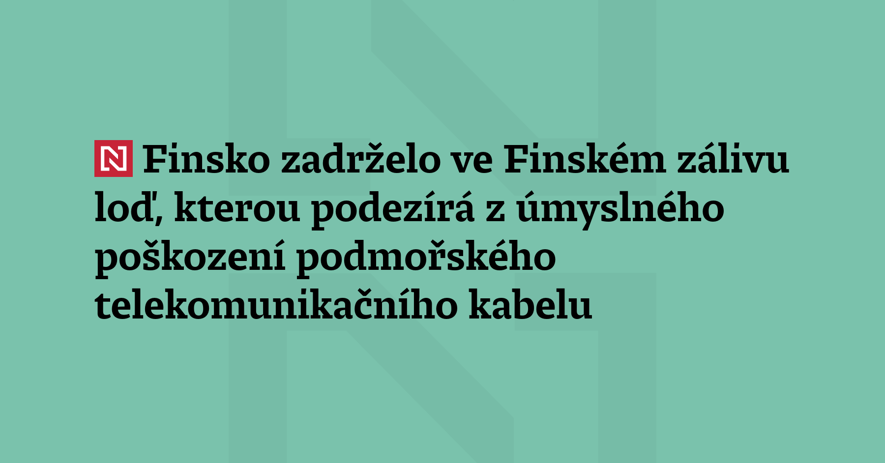 Finské úřady zadržely ve Finském zálivu loď, kterou podezírají z úmyslného poškození podmořského telekomunikačního kabelu, oznámil finský prezident Alexander Stubb. (ČTK)