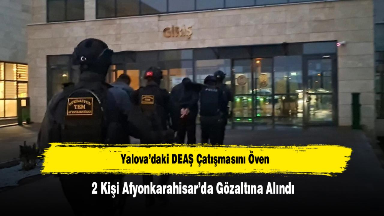 Yalova'da 3 polisin şehit olduğu olaylarda DEAŞ terör örgütünün yaptığı eylemi ve çatışmayı sosyal medya hesapları üzerinden destekleyici/övücü paylaşım yapan iki kişi Afyonkarahisar’da gözaltına alındı.