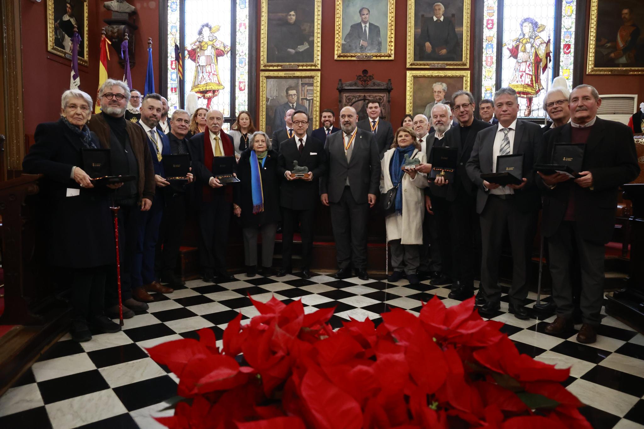 El Ajuntament de Palma entregó este miércoles las Medallas de Oro de Ciutat y nombró a Pilar Juncosa y Caty Juan de Corral Hijas Ilustres. A las 12.00 horas en el pleno del Ayuntamiento se entregaron las distinciones a los premiados. La primera medalla fue para la compañía, productora y distribuidora de espectáculos Iguana Teatre, referente de la historia de las artes históricas de Balears. Recogieron el reconocimiento Carles Molinet y Pere Fullana, de la compañía.