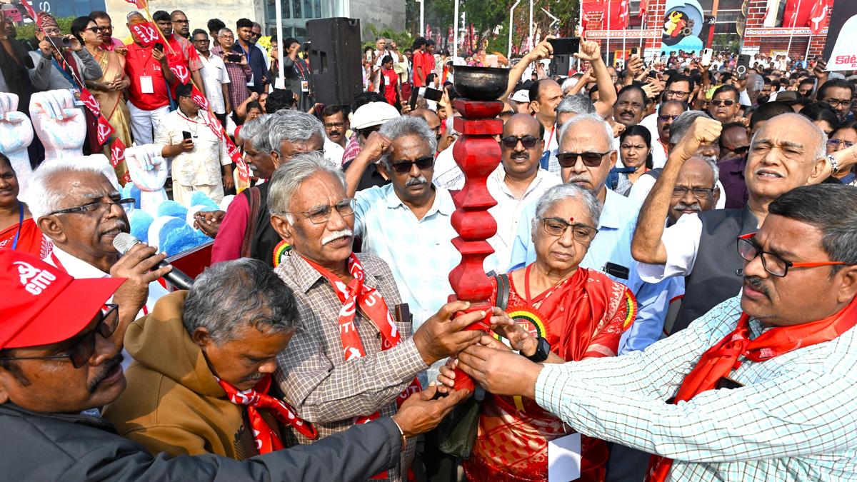 Conference adopts resolutions demanding repeal of four labour codes and opposing privatisation of the Visakhapatnam Steel Plant; leaders of major trade unions and international labour bodies express solidarity