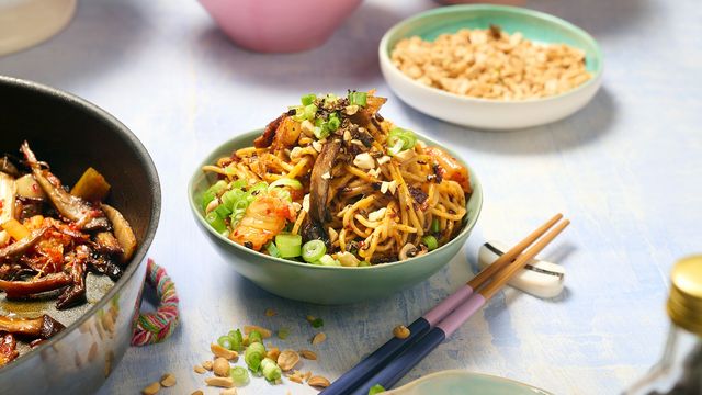 Eine Nudelpfanne wie vom asiatischen Streetfood-Markt