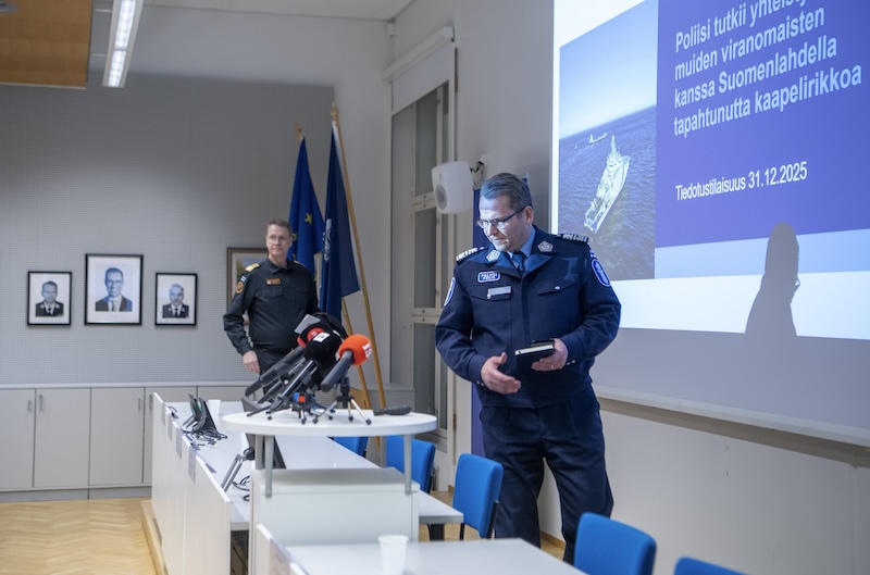 Finnish authorities escorted the cargo vessel Fitburg into Kantvik port in Kirkkonummi on Wednesday afternoon under heavy guard, following its seizure on suspicion of damaging an undersea telecommunications cable owned by Elisa. The ship reached the port at around 17:00, moving slowly behind a tug. A larger patrol vessel remained farther offshore. Armed officers were visible on deck as the vessel entered the harbour. Police also restricted movement on nearby roads.