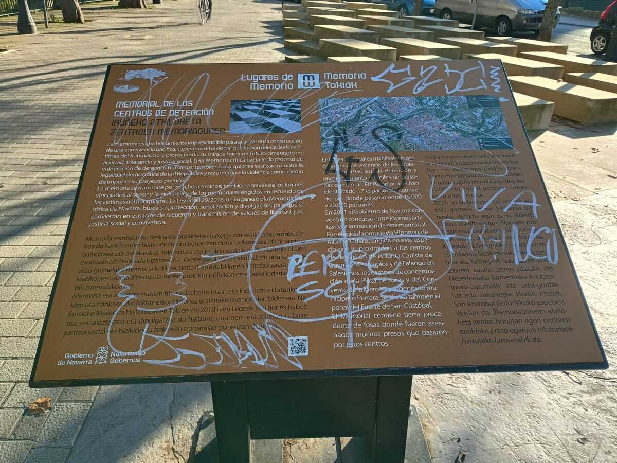 Vandalizan otra placa de memoria histórica en Iruñea