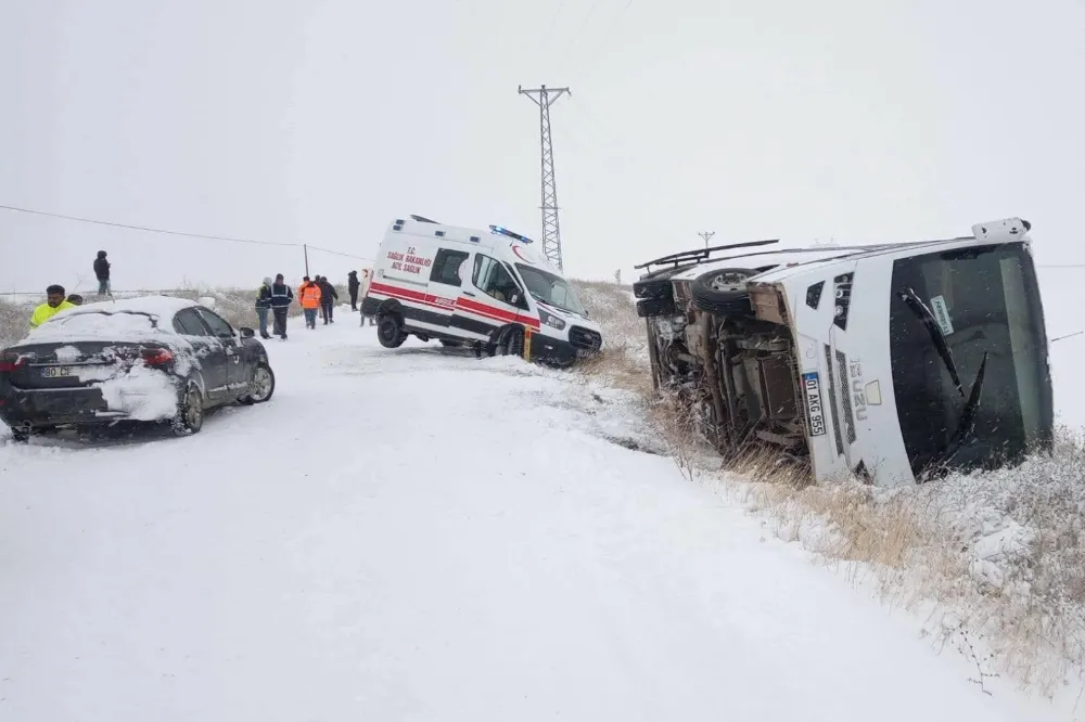 Adana Tufanbeyli'de işçi servisi devrildi, yardıma giden ambulans kara saplandı