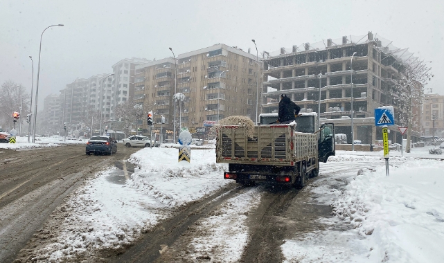 KASKİ Genel Müdürlüğü, şehir merkezinde yürütülen kar küreme, tuzlama ve solisyon uygulamalarına 53 iş makinesiyle destek veriyor.