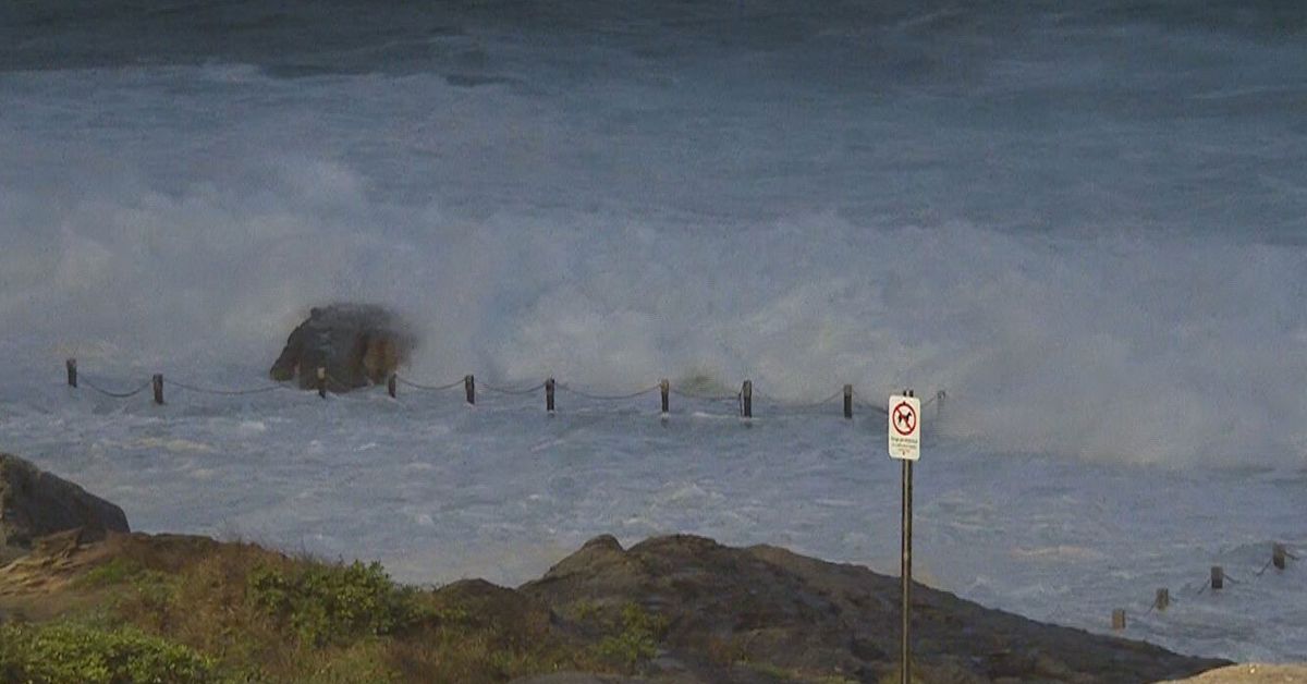 A wave knocked the 25-year-old into a tidal rockpool before more waves pushed her into the ocean, police were told.