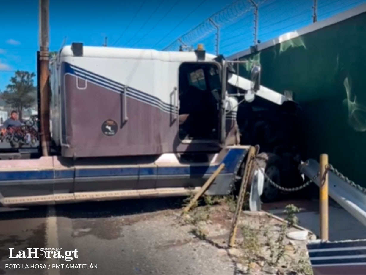 La Policía Municipal de Tránsito (PMT) de Amatitlán, informó de un accidente de tránsito protagonizado por un tráiler en el kilómetro 29 de la ruta al Pacífico, complicando la movilidad de sur a norte este 31 de diciembre. «Un piloto pierde el control del transporte pesado y viene a chocar contra la pared de una empresa, […] The post Tráiler se accidenta en Amatitlán paso vehicular para la capital es complicado appeared first on La Hora .
