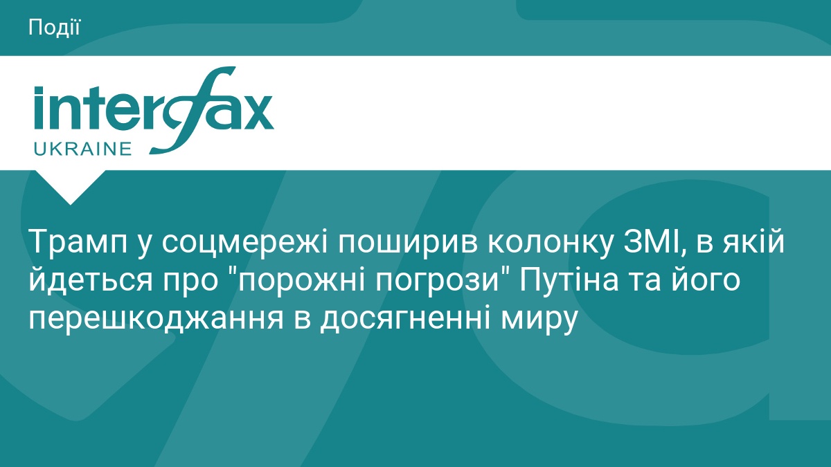 Президент США Дональд Трамп у соцмережі Truth Social поширив редакційну колонку видання New York Post, в якій наголошується, що порожні погрози очільника Кремля Володимира Путіна щодо нібито спроби атаки на нього українськими дронами свідчать про те, що саме Росія перешкоджає встановленню миру.