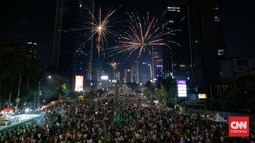 Perayaan malam tahun baru 2026 di Jakarta hingga Yogyakarta tetap dipenuhi kembang api meski ada larangan dari polisi.