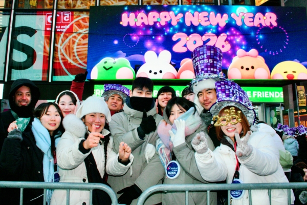 纽约时代广场迎接2026 亚裔游客期许内心强大善良
