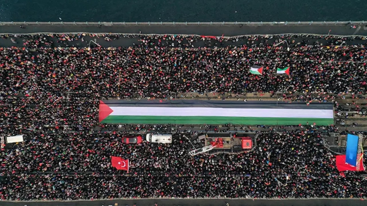 Filistin'de ateşkes ilan edilmesine rağmen İsrail'in saldırıları devam ediyor. Yeni yılın ilk sabahında İstanbul'da on binlerce kişi İsrail soykırımına "Dur" demek için bir araya geliyor. Sabah namazının ardından soğuk havaya rağmen Sultanahmet Meydanı'nda toplanmaya başlayan kitle, ilerleyen dakikalarda Galata Köprüsü'ne doğru yürüyüşe başlayacak.