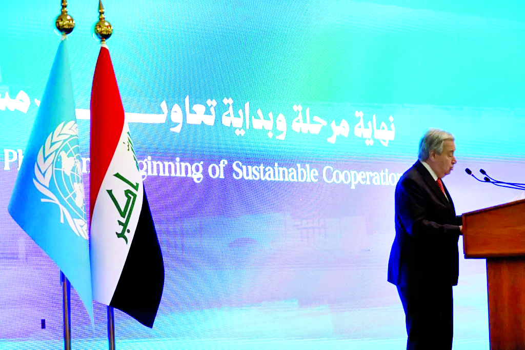 أنهت بعثة الأمم المتحدة لمساعدة العراق (يونامي) مهمتها مساء أمس، بعد 22 عاما من إنشائها، في بلد، بات يشهد استقرارا نسبيا ويعمل على التعافي من عقود من النزاعات. وجاء ذلك بناء على طلب بغداد، بعد أن مدّد مجلس الأمن الدولي العام الماضي مهمة البعثة التي وُجدت في العراق لتقديم الدعم والمشورة خلال التحول السياسي الذي أعقب الغزو الأمريكي عام 2003 والذي أطاح بنظام صدام حسين، لفترة أخيرة حتى 31 ديسمبر 2025. وخوّلت حكومة تصريف الأعمال وزير الخارجية فؤاد حسين بـ»صلاحية التوقيع على مشروع مذكرة تفاهم لخطة إغلاق البعثة والاحتياجات الأمنية الانتقالية، بشأن تسليم المجمع الذي تشغله البعثة في بغداد ومتعلقات إشغاله»، بحسب بيان رسمي. وطال الإسناد الذي قدمته البعثة للسلطات العراقية مجالات الحوار السياسي والمصالحة الوطنية، وساعدت في تنظيم الانتخابات ودعمت إصلاح القطاع الأمني. وفي السنوات الأخيرة، ومع استعادة العراق قدرا من الاستقرار، اعتبرت السلطات العراقية أنه لم تعد هناك مبررات لاستمرار وجود بعثة سياسية أممية في البلاد. وأكّد مسؤول حكومي عراقي سابق لوكالة فرانس برس أن إنهاء مهمة البعثة يشكل تأكيدا على أن العراق اليوم لم يعد ذاك الذي كان في 2003 أو 2013. وقال المسؤول إن توقيت إنهاء المهمّة يتناسب مع «التحوّل الجذري من الحروب والديكتاتورية والعقوبات والإرهاب». ومن بغداد، أكّد الأمين العام للأمم المتحدة أنطونيو غوتيريش في 13 ديسمبر أن «الأمم المتحدة ستواصل دعم الشعب العراقي في مساره نحو السلام والتنمية المستدامة وحقوق الإنسان»، عبر مختلف الوكالات الأممية والبرامج العاملة في العراق.