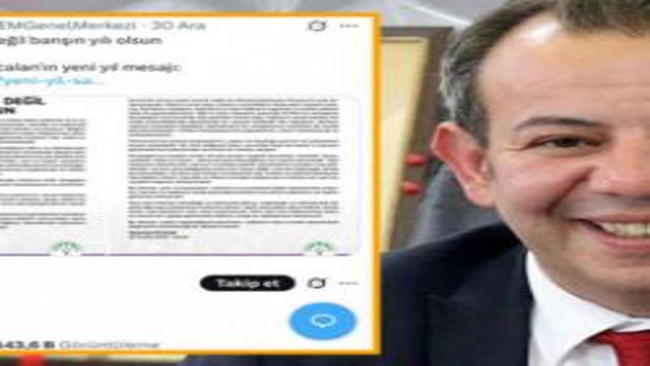 Bolu Belediye Başkanı Tanju Özcan, DEM Parti'nin geçen gün paylaştığı terör örgütü PKK elebaşı Abdullah Öcalan'ın yeni yıl mesajının altına, "Allah belanızı versin." diye yazdı.