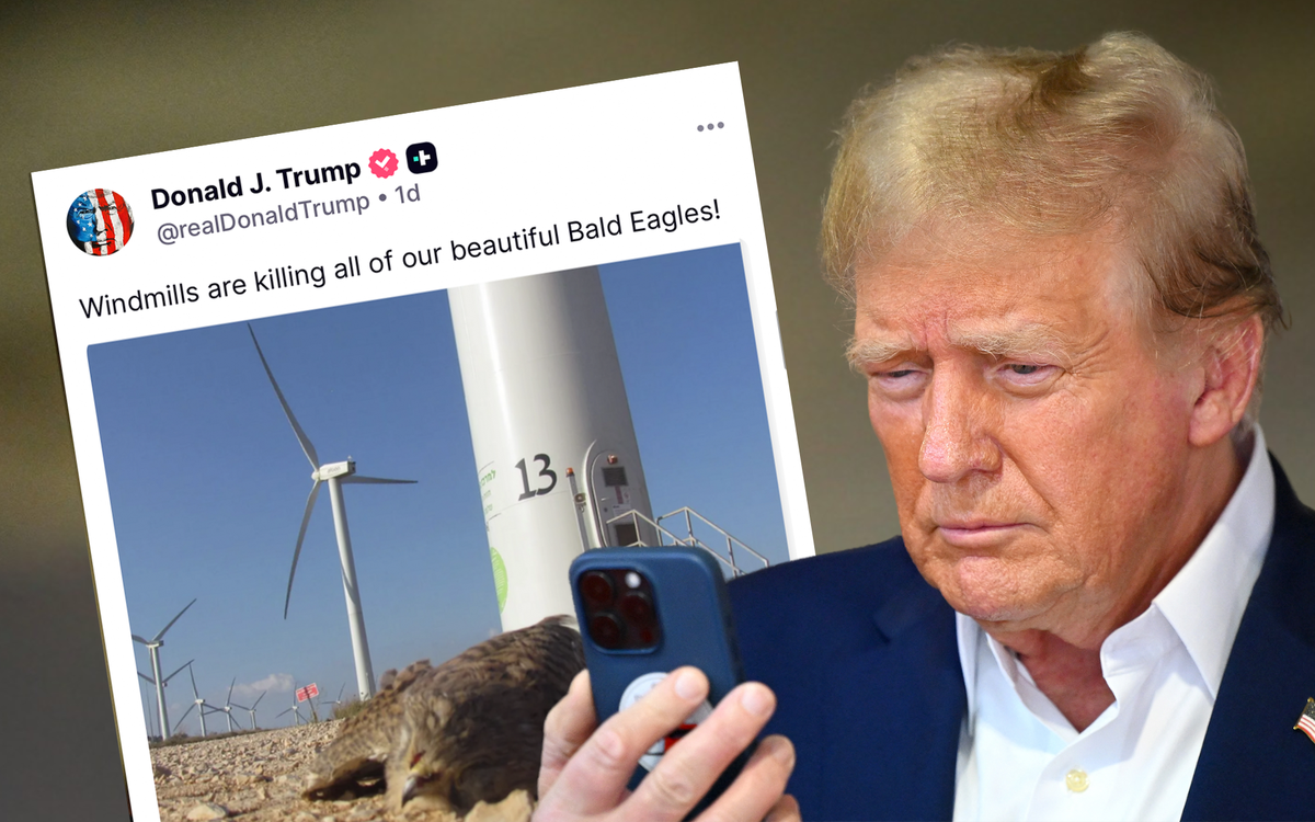 Tổng thống Mỹ Donald Trump tuyên bố rằng các turbine điện gió đang “giết chết tất cả những con đại bàng đầu trọc xinh đẹp của nước Mỹ”, kèm theo một bức ảnh chim bị cánh quạt gió sát hại. Tuy nhiên, kiểm chứng cho thấy điều này không đúng sự thật.