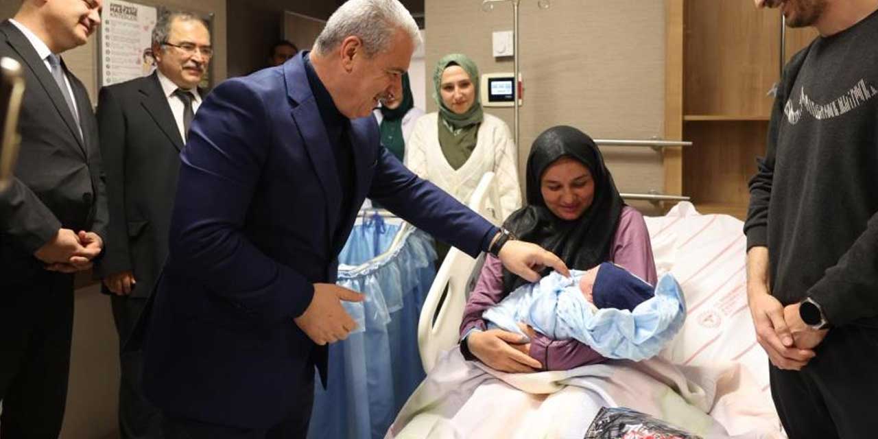 Konya’da 2026 yılının ilk bebeği, yeni yılın ilk dakikalarında dünyaya gelen Alparslan Özkara oldu. 3 kilo 10 gram ağırlığında doğan bebek ve annesi, protokol üyeleri tarafından ziyaret edildi.