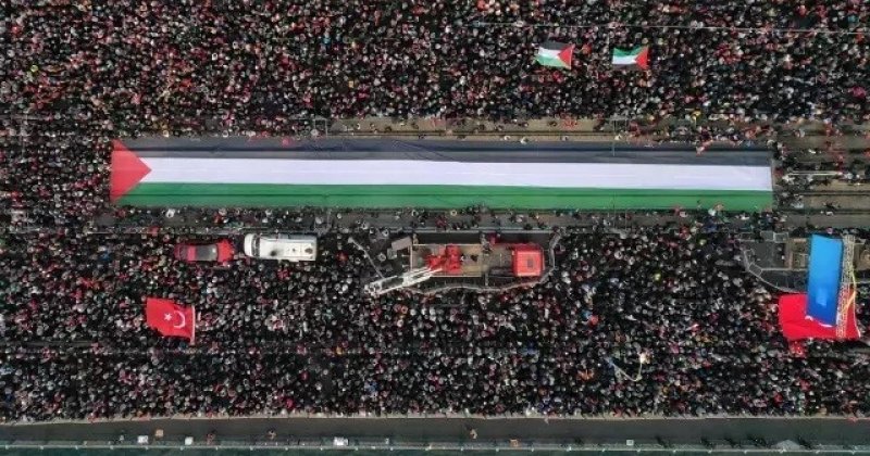 Filistin'e destek için on binlerce kişinin Galata Köprüsü'ne yürüyüşü başladı 00'den fazla sivil toplum kuruluşunun iştirakiyle düzenlenen "Sinmiyoruz, susmuyoruz, Filistin'i unutmuyoruz" mitingi için sabah namazında camilerde bir araya gelen on binlerce katılımcı, kortejlerle Galata Köprüsü'ne doğru yürüyüşe başladı.
