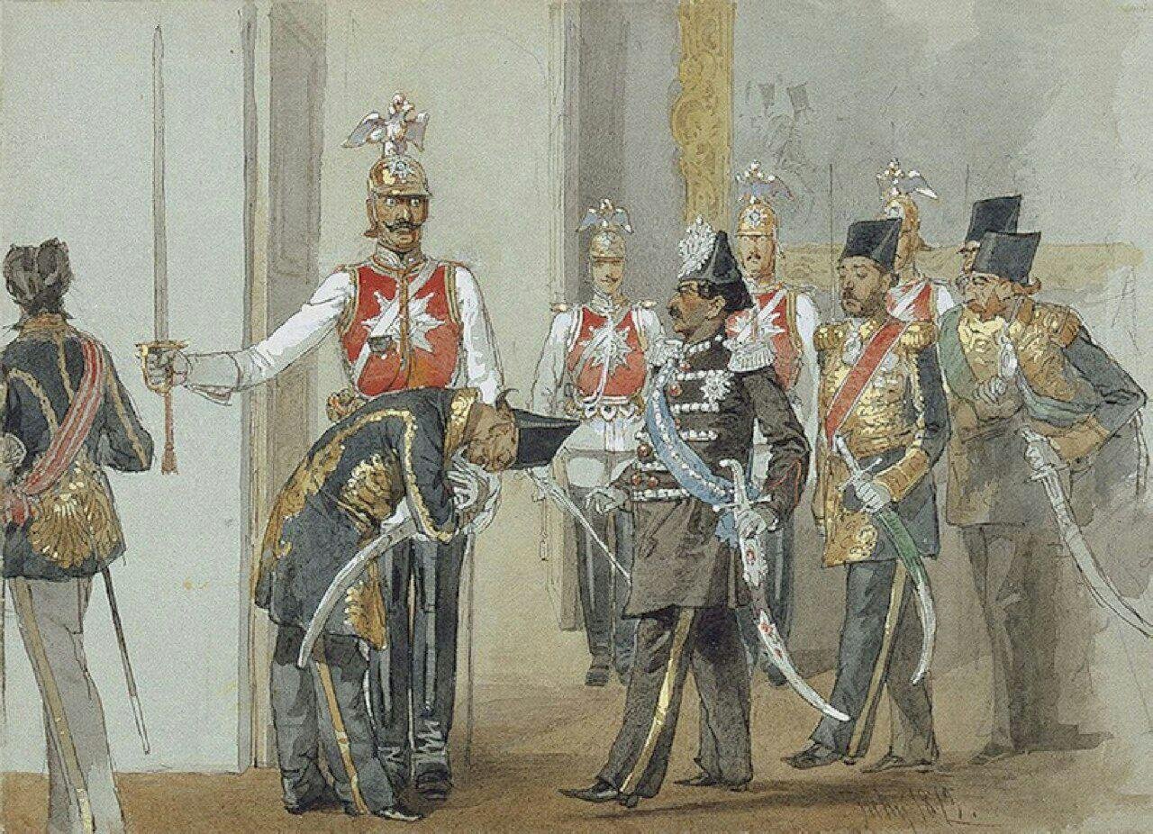ناصرالدینشاه در سفر اول خود به اروپا در سال ۱۲۵۲ خورشیدی از روسیه دیدن کرد و در سنپترزبورگ مورد استقبال رسمی قرار گرفت. (عکس درون متن)