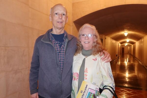 2025年12月31日下午,有机农场主夫妇Kent Truscott和Susan Truscott一起观赏了神韵北美艺术团在旧金山歌剧院(War Memorial Opera House)的首场演出。(舒楠/大纪元)