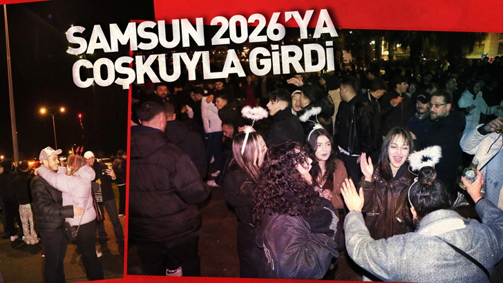 SAMSUN’un Atakum ilçesinde yüzlerce vatandaş yılbaşını coşkulu şekilde kutladı. Noel baba ve değişik kostümlerle yeni yıla giren vatandaşlar, 2026’ya dans ederek girdi.