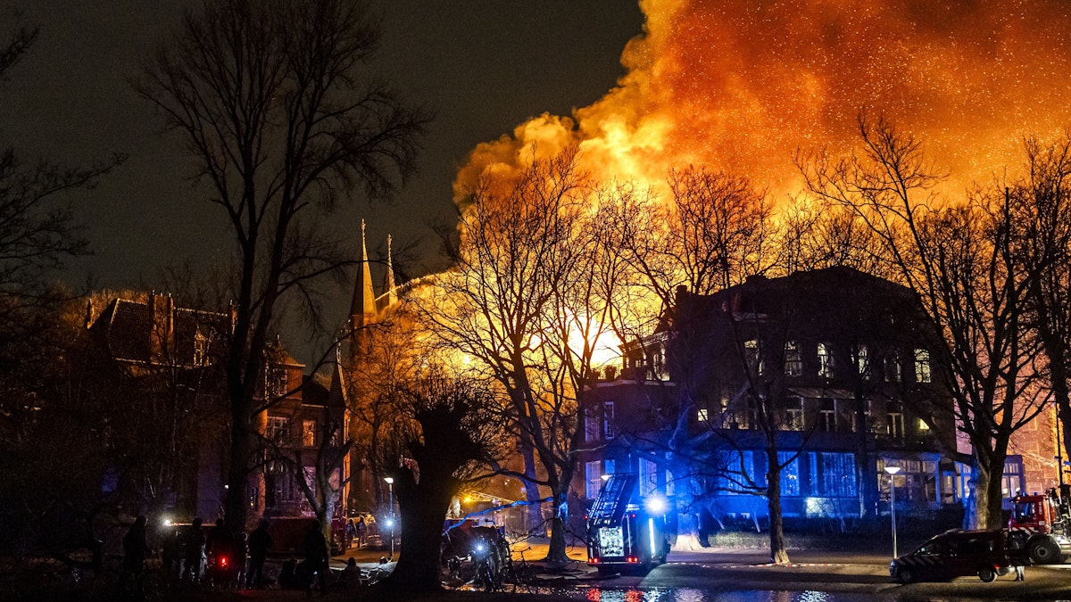 Eine bekannte Kirche in Amsterdam ist wohl aufgrund einer Rakete in Flammen aufgegangen, ein Kirchturm stürzte ein.