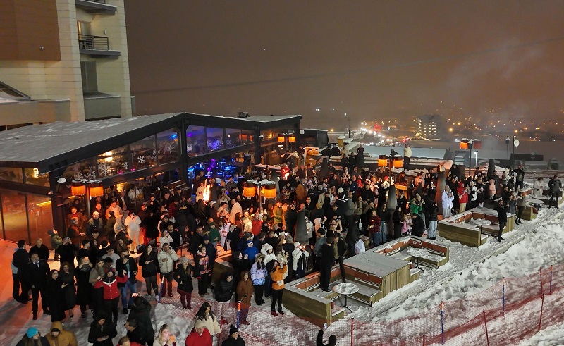 PALANDÖKEN'i tercih eden tatilciler, soğuk hava ve kar yağışı havai fişek eşliğinde düzenlenen meşaleli kayak gösterisini izleyerek yeni yıla girdi.