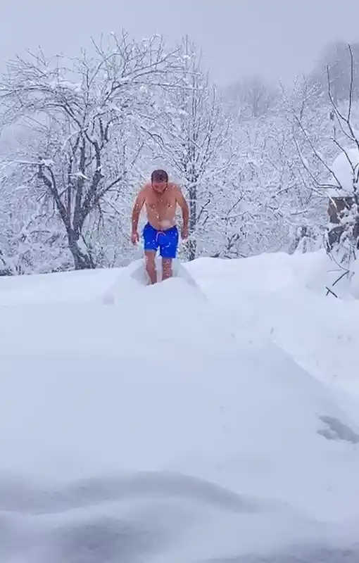 eksi 10 dereceyi aldırmadan şortuyla karda yüzdü