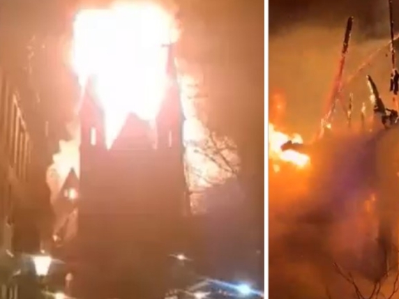 Il video della chiesa divorata dal fuoco