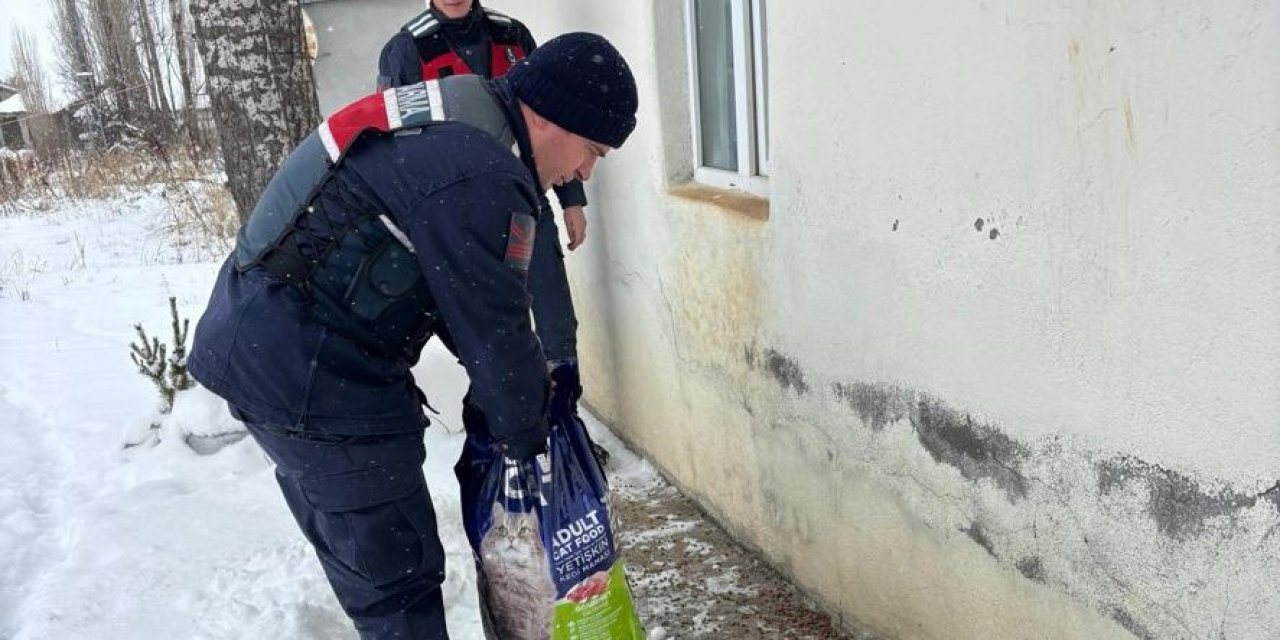 Sivas’ta jandarma ekipleri kış şartları nedeniyle yiyecek bulmakta zorlanan sokak hayvanları ve kuşlar için kırsalda yemleme çalışması yaptı.