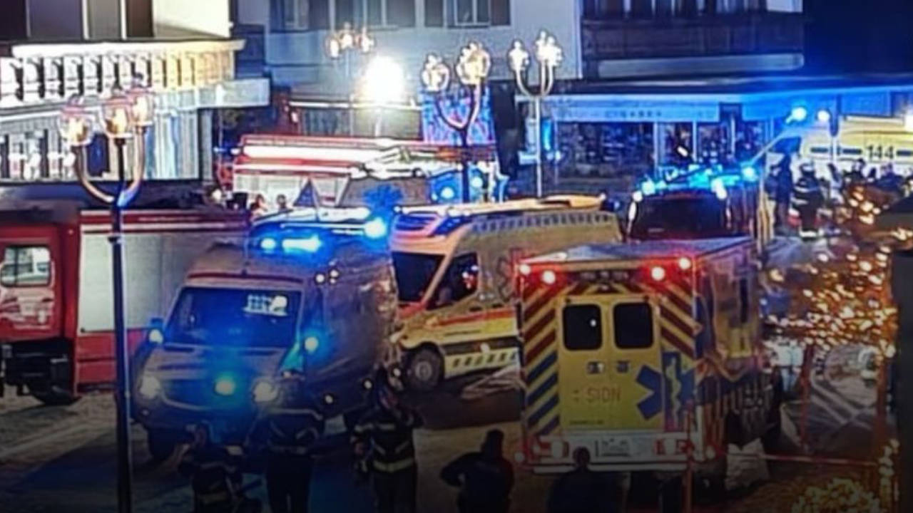 İsviçre medyası tarafından yayınlanan görüntülerde alevler içinde bir bina ve karanlıkta çığlık atarak koşan insanlar görülüyor.