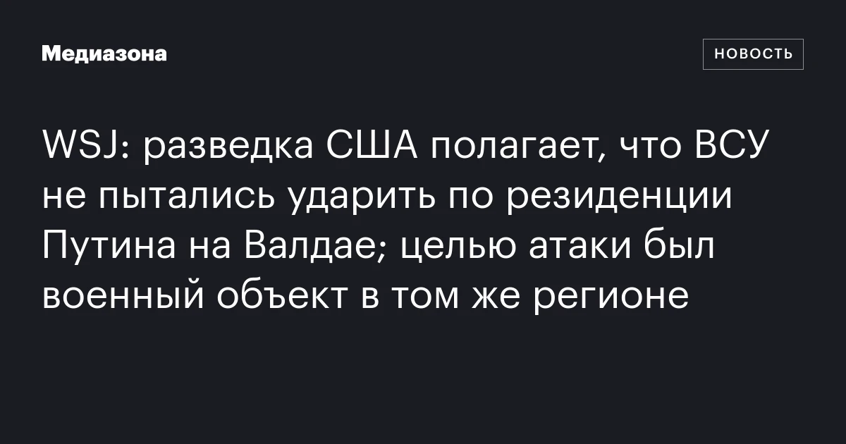 WSJ: разведка США полагает, что ВСУ не пытались ударить по резиденции Путина на Валдае; целью атаки был военный объект в том же регионе