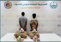 حرس الحدود بعسير يقبض على إثيوبيين لتهريبهما 40 كيلوجرامًا من القات المخدر
