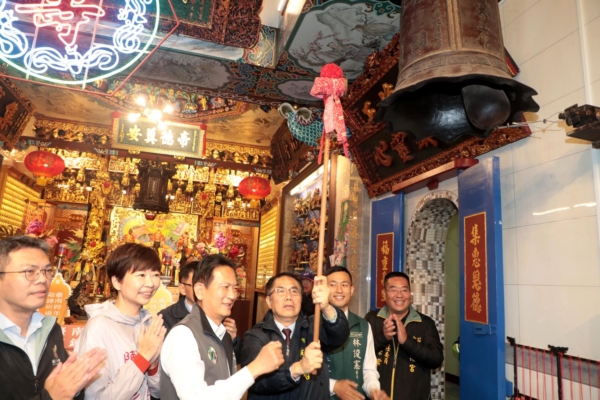 台南市长黄伟哲带领众人敲钟,将祝福传遍城市每个角落。(南市府提供)