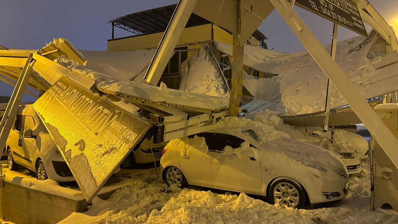 Şanlıurfa'da bazı iş yerleri ile oto galeri dükkanlarında araçların bulunduğu alanların çatıları, üzerlerine biriken karın ağırlığına dayanamayarak çöktü, 67 araç hasar gördü.