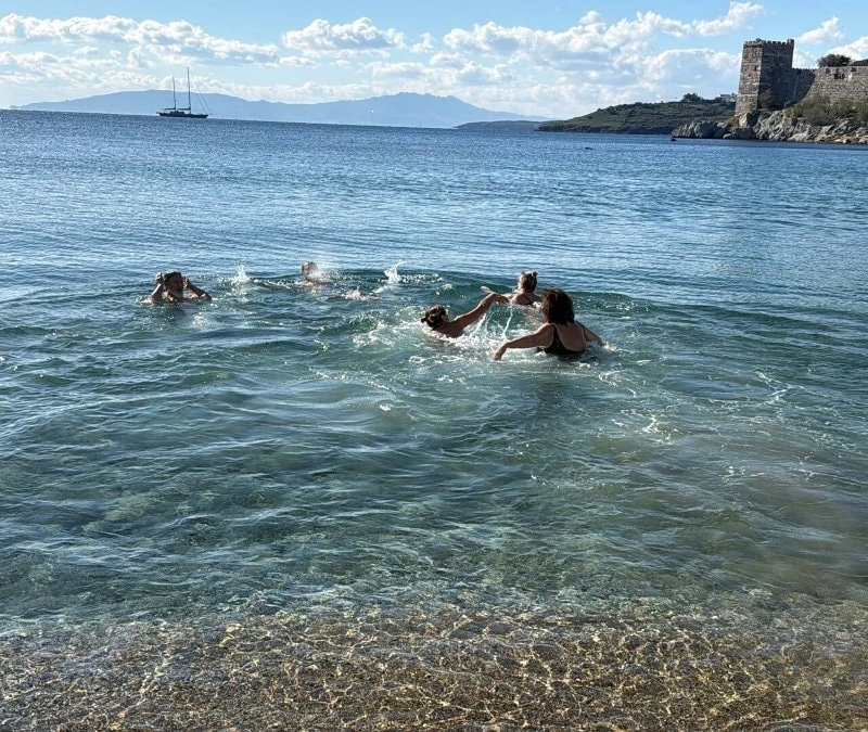 Muğla'nın Bodrum ve Milas ilçelerinde, yeni yılın ilk gününde vatandaşlar soğuk havaya aldırış etmeden denize girdi.