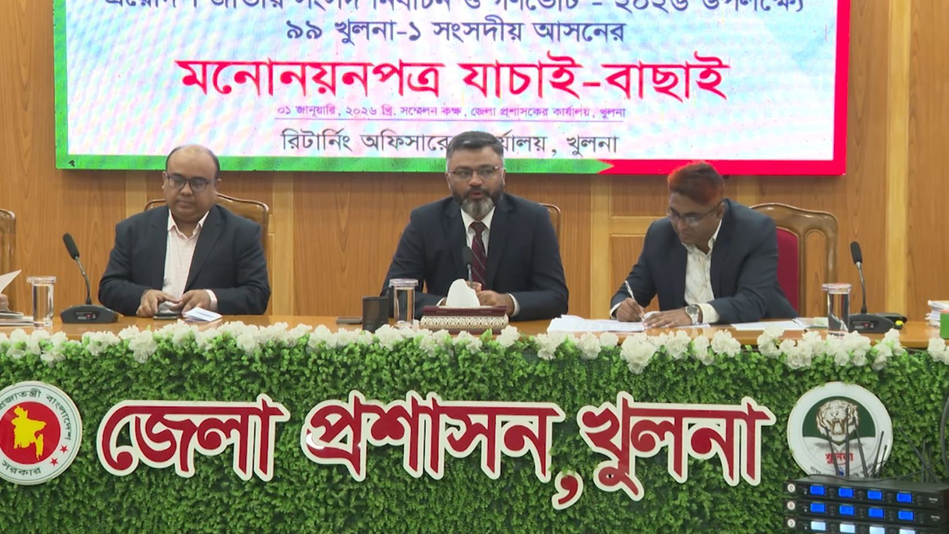 আসন্ন ত্রযোদশ জাতীয় সংসদ নির্বাচনে খুলনা-১ আসনে মনোনয়ন যাচাই বাছাইয়ে তিন প্রার্থীর মনোনয়ন বাতিল হয়েছে।যাচাই বাছাইয়ের ২য় দিনে খুলনা ১ আসনে দাখিল হওয়া ১৩ টি মনোনয়ন পত্র যাচাই করেন রিটার্নিং কর্মকর্তা ও জেলা প্রশাসক আ স ম জামসেদ খোন্দকার। যাচাই বাছাই শেষে বৈধ ও অবৈধ প্রার্থীদের নাম ঘোষণা করেন খুলনা জেলা রিটার্নিং কর্মকর্তা ও জেলা প্রশাসক আ স ম জামসেদ খন্দকার। এ সময় স্বাক্ষর জালিয়াতি ও প্রস্তাবকারী অন্য এলাকার ভোটার হওয়ার অভিযোগে গণঅধিকার পরিষদের জিএম রোকনুজ্জামান, সতন্ত্র প্রার্থী গোবিন্দ হালদার ও অচিন্ত কুমার মন্ডলের মনোনয়ন বাতিল ঘোষনা করা হয়েছে। বৃহস্পতিবার সকাল সাড়ে ১০ টায় জেলা প্রশাসক ও রিটার্নিং কর্মকর্তার কার্যালয়ে এ যাচাই বাছাই কার্যক্রম অনুষ্ঠিত হয়। এ সময় বিএনপি, জামায়াত সহ বিভিন্ন রাজনৈতিক দলের প্রার্থীরা উপস্থিত ছিলেন। বাতিল হওয়া প্রার্থীরা নির্দিষ্ট সময়ের মধ্যে নির্বাচন কমিশনে আপিল করার সুযোগ পাবেন বলে জানান রিটার্নিং কর্মকর্তা।আরও পড়ুন: খুলনা-৩ আসনে তিন প্রার্থীর মনোনয়ন বাতিলযাচাই বাছাই শেষে বৈধ প্রার্থীরা হলেন, জাতীয় পার্টির সুনীল শুভ রায়, ইসলামী ফ্রন্টের মো. জাহাঙ্গীর হোসেন, জামায়াত ইসলামীর কৃষ্ণ নন্দী, বাংলাদেশের কমিউনিস্ট পার্টির কিশোর কুমার রায়, ইসলামী আন্দোলন বাংলাদেশের মো. আবু সাঈদ, জেএসডির প্রসেনজিৎ দত্ত, বিএনপির আমীর এজাজ খান, বাংলাদেশ মাইনরটি জাতীয় পার্টির প্রবীর গোপাল রায়, বাংলাদেশ খেলাফত মজলিসের ফিরোজুল ইসলাম ও বাংলাদেশের সম অধিকার পরিষদের সুব্রত মন্ডল।