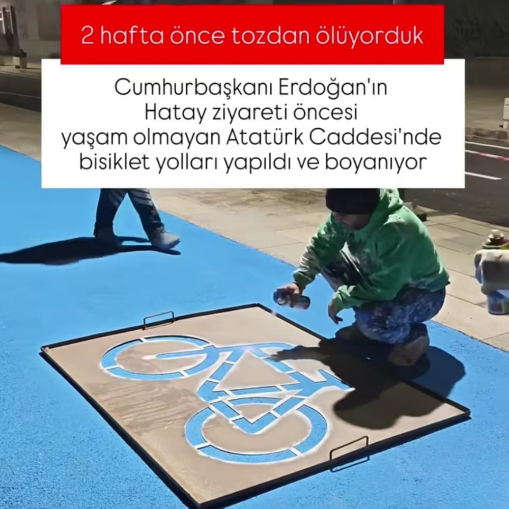 AKP’li Cumhurbaşkanı Tayyip Erdoğan’ın geçtiğimiz hafta gerçekleştirdiği Hatay ziyareti geride büyük bir kamu zararı bıraktı. Erdoğan’ın geçeceği protokol güzergahı adeta bir "film seti" gibi kurgulanmış, kaba inşaat halindeki binaların üzerine bitmiş apartman görselleri giydirilmiş, Asi Nehri üzerindeki köprünün korkulukları akarsu resimleriyle kapatılmış ve konteyner kentlerin sefaleti brandalarla gizlenmişti. Hatta sokağı bile olmayan yollara çizilen "bisiklet yolları", yağan ilk yağmurla silinip gitmişti. Ancak bu "makyaj" çalışmasının en maliyetli kalemi, göze çarpmayan bir detayda gizliydi. Kentteki yoğun inşaat görüntüsünü Erdoğan’ın kadrajından uzak tutmak amacıyla, faal durumdaki çok sayıda kule vinç söküldü. Yukarıdaki fotoğraf ile aşağıdaki fotoğraf aynı yere ait. Yalnızca bir gün arayla çekilen bu iki fotoğrafta yağan yağmur ile yapılan bisiklet yolunun silindiğini, boyaların aktığı görülüyor. Bir vincin sökülüp takılması yüz binlerce liraya mal oluyor soL, Erdoğan’ın ziyareti sırasında "görüntü kirliliği" yaratmaması adına sökülen ve ziyaret sonrası tekrar kurulacak olan kule vinçlerin maliyetini araştırdı. Kule vinç operatörlerinin verdiği bilgiler, yapılan işlemin faturasının ne kadar ağır olduğunu gözler önüne serdi. Süreç, söküm ve takım olmak üzere iki aşamalı işliyor ve her biri ayrı maliyet kalemleri oluşturuyor: Söküm maliyeti: Bu işi üstlenen firmalar, ortalama bir kule vincin sökümü için 100 bin ila 150 bin lira arasında bir ücret talep ediyor. Mobil vinç kirası : Kule vinci sökebilmek için devasa bir mobil vinç kiralanmak zorunda. Bu araçların günlük kirası ise 40 bin ila 50 bin lira arasında değişiyor. Yani tek bir kule vincin sadece sökülmesi işlemi, en iyimser tabloyla 140 bin lira ile 200 bin lira arasında bir maliyet yaratıyor. Günübirlik sökülen vinçler Hatay'da yerel sosyal medya hesaplarında gündem olmuştu. Fiyat ikiye katlanıyor: 3-4 milyon liralık 'manzara' harcaması İşlem sökümle bitmiyor. İnşaatların devam etmesi için sökülen vinçlerin, ziyaretin hemen ardından aynı yere yeniden kurulması gerekiyor. Bu da aynı maliyetin (mobil vinç kirası ve ekip ücreti) tekrar ödenmesi demek. Hesaplamalara göre tek bir kule vincin sökülüp takılma maliyeti 300 bin ila 400 bin lirayı buluyor. Hatay genelinde Erdoğan’ın güzergahı üzerindeki inşaat sahalarında, 10 kule vincin bu amaçla söküldüğü takdirde dahi milyonlarca lira harcanıyor. Bu da sadece vinç operasyonu için en az 3 ila 4 milyon lira arasında bir paranın, sırf "Erdoğan inşaat görmesin" diye harcandığı anlamına geliyor. Erdoğan ziyareti öncesinde inşaatların önü apartman görselleri ile kapatılmıştı. Paralar depremzedelerin ihtiyaçları yerine vinç sökümüne gitti İktidarın sürekli "tasarruf" çağrısı yaptığı, bütçe kısıntılarıyla övündüğü bir dönemde, tek seferlik bir açılış görseli için harcanan bu milyonlar, depremzedelerin gerçek ihtiyaçlarıyla kıyaslandığında tablo daha da vahimleşiyor. Sadece vinçlerin sökülüp takılmasına harcanan milyonlarca lirayla, binlerce depremzede çocuğa okullarda bir öğün yemek verilebilir, öğrencilerin kırtasiye masrafları karşılanabilir, üniversite öğrencilerine barınma ve gıda bursu sağlanabilirdi. Bisiklet yolları, brandalar, afişler ve vinç operasyonları alt alta toplandığında, Hatay’daki bu bir günlük "şovun" maliyeti devasa bir kamu zararına dönüşüyor. Depremzedelerin sesini duyurmak ve gerçeğin mücadelesini büyütmek için soL'a abone ol. ABONE OL Hataylılar tepkili: 'Madem Erdoğan gelince yapılıyor...' Günübirlik makyaj çalışmalarına ve harcanan paralara tepki gösteren depremzedelerse durumu eleştiriyor. Konteyner kentlerde yaşam mücadelesi veren yurttaşlar, yapılan harcamalara ve geçici düzenlemelere şu sözlerle tepki gösteriyor: "Madem Erdoğan gelince bir şeyler yapılıyor, yollar düzeliyor, o zaman her gün gelsin. Yoksa Hatay'daki bu şantiye alanı ve toz toprak hiç bitmeyecek."