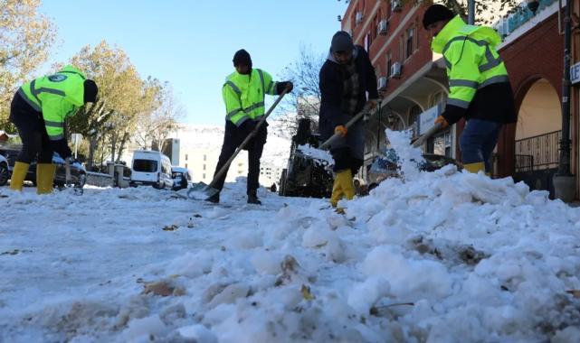 Mardin'in Yeşilli ilçesinde etkili olan yoğun kar yağışı ve soğuk hava, ulaşımın aksamaması için Yeşilli Belediyesi ekipleri sahada yoğun mesai harcıyor.