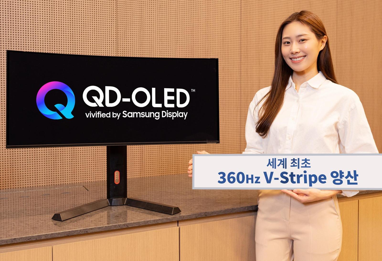 삼성디스플레이는 세계 최초로 ‘V(버티컬)-스트라이프’ 픽셀 구조의 34형 360Hz(헤르츠) 퀀텀닷 유기발광다이오드(QD-OLED)를 출시한다고 1일 밝혔다. 해당 제품은 지난해 12월부터 양산을 시작해 에이수스, MSI 등 7개 모니터 제조사에 공급하고 있다. V-스트라이프는 빛의 삼원색인 레드(R), 그린(G), 블루(B)의 서브 픽셀을 세모 모양으로 배치하는 기존 QD-OLED와 달리 R, G, B 서브 픽셀이 세로 줄무늬 형태로 배치된다. 이 때문에 문자 가장자리를 선명하게 표현할 수 있어 문서 작업, 코딩, 콘텐츠 제작 등에서 더 큰 효과를 볼 수 있다. 해당 제품이 적용된 모니터는 6일(현지 시간) 미국 라스베이거스에서 개막하는 ‘CES 2026’에서 에이수스, MSI의 모니터 신제품을 통해 처음 공개될 예정이다.