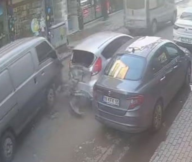 Otomobile binen çocuklar, minibüsün arkadan çarpmasıyla büyük panik yaşadı; kaza anı kameralara yansıdı
