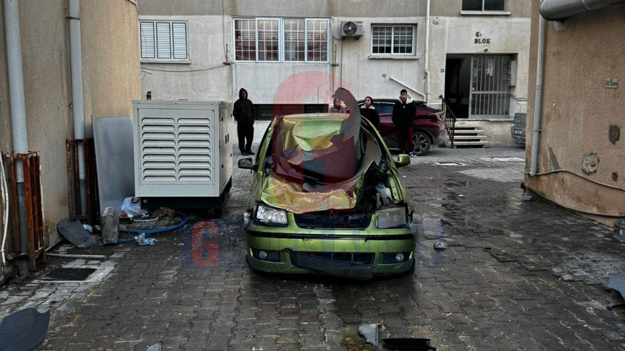 Lefkoşa’da şiddetli rüzgar etkisini gösterdi. Ortaköy'de bir apartmanın damındaki su deposu rüzgarın eskisiyle park halindeki aracın üstüne düştü.