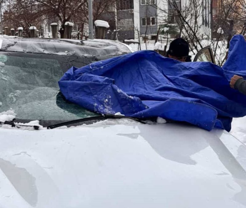 Binaların çatısında biriken kar kütleleri park halindeki araca düştü, otomobil kullanılamaz hale geldi.