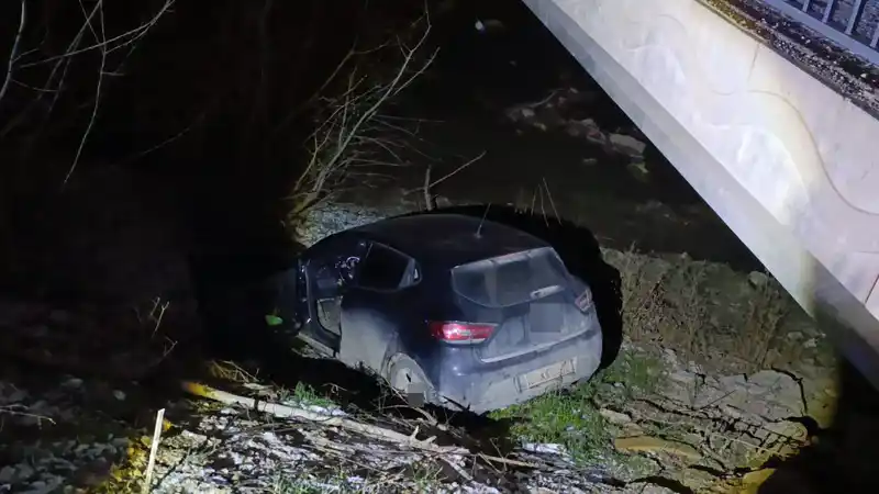 otomobil dereye uçtu, sürücü yaralandı