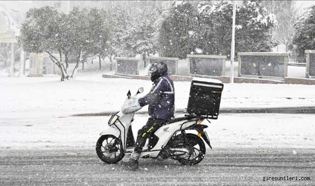 Giresun’da etkisini sürdüren yoğun kar yağışı ve buzlanma riski nedeniyle motokurye, motosiklet ve scooterların trafiğe çıkışı geçici olarak yasaklandı.