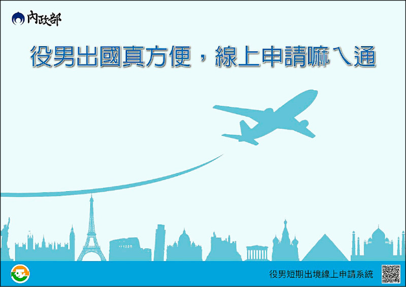 〔記者林哲遠、方瑋立/台北報導〕民國九十六年次出生的男子,昨日起即為役齡男子,在出國前三十天內提出短期出境申請,取得役男核准通知單,才能順利出境。內政部提醒說,役男上網申請短期出境,如系統查核確認無管制情形,將核准出境並於核准日起一個月內多次出境,不需重複申請,每次出境最長不可超過四個月。一旦役男已…