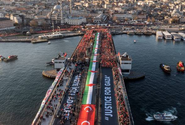 Kira-kira 520,000 berhimpun di Jambatan Galata, Istanbul pada hari pertama Tahun Baharu sertai perarakan besar sokong Palestin.